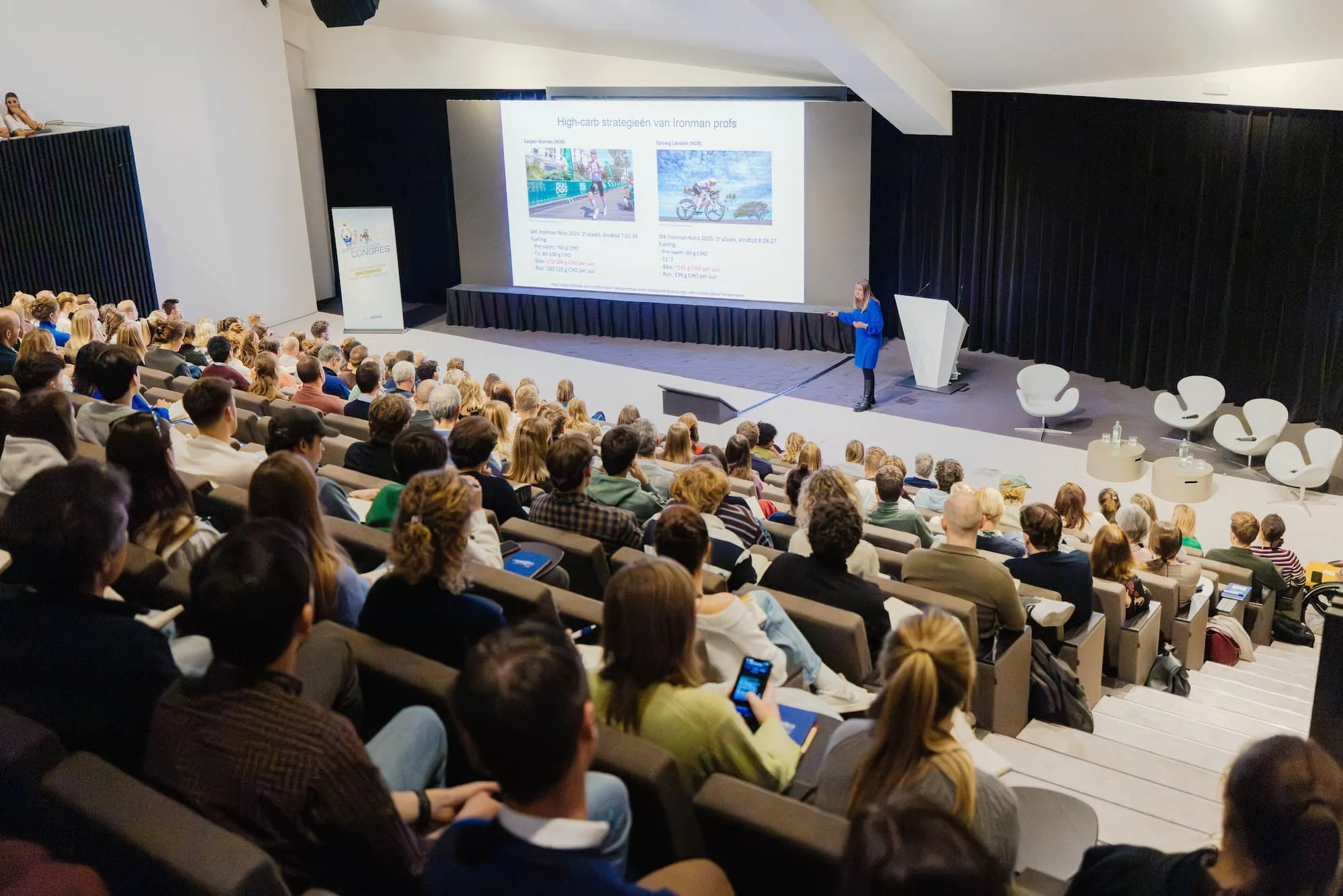 Het congres bood een uitstekend uitgebalanceerd programma met twee sterke keynotes. Prof. Dr. Katrien Koppo deelde haar diepgaande kennis over de rol van koolhydraten bij sportprestaties en het belang van hydratatie en elektrolyten tijdens inspanning, terwijl sportdiëtiste Jolien Lewyllie deze inzichten vanuit de praktijk vertaalde naar concrete, haalbare strategieën voor atleten.