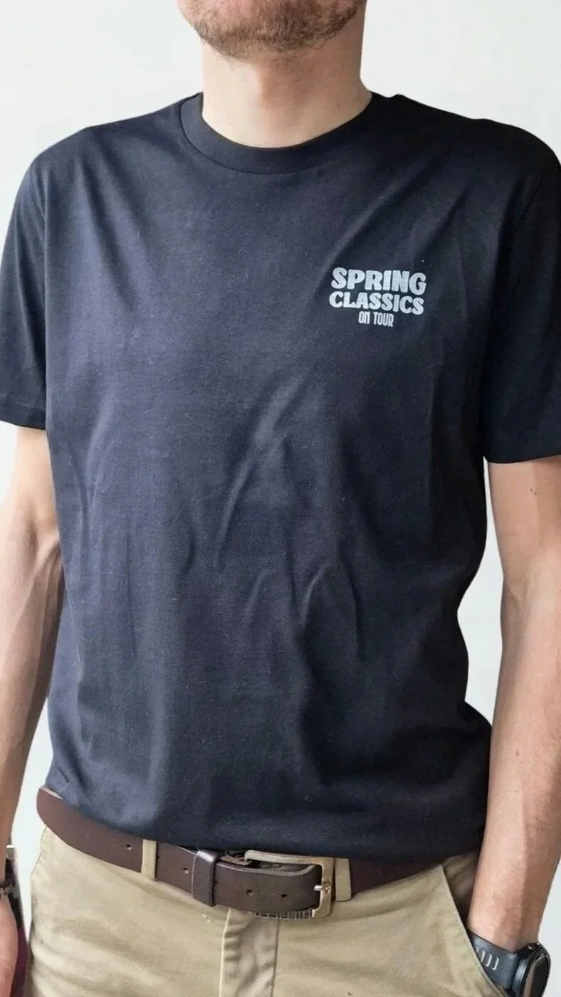 Deze shirt ademt Vlaamse wielercultuur: van kasseistroken en juichende supporters tot café, bier en frieten. Het is een ode aan de unieke sfeer die enkel Vlaanderen kan bieden tijdens de klassiekers. Gemaakt uit 100% biologisch katoen en met een tijdloos design.